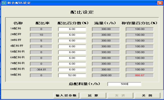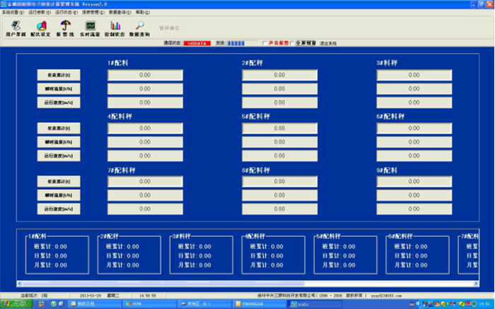 2、配料系統(tǒng)自動(dòng)控制畫面 ①、操作系統(tǒng)具備自動(dòng)生成班報(bào)、日?qǐng)?bào)、月報(bào)報(bào)表功能. ②、顯示的數(shù)據(jù)包括運(yùn)行方式、瞬時(shí)流量、累計(jì)量、斷料報(bào)警(聲光報(bào)警)。